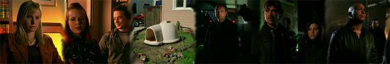 Neptune: Veronica pulls up outside Harry's house and knocks on the door. A younger boy answers with a nasty black eye. She introduces herself and he recognizes her from Neptune High, as a cheerleader or something. Veronica says it's the or something. She asks where she can find Harry and he asks what she will give him. She says a dollar and as a bonus, won't beat him silly. He laughs and says he might like that. She flicks him in the eye and says she thinks he wouldn't. He tells her Harry is out the back, and she walks around the house. Harry has a crossbow in his hands and is shooting a stuffed deer. Veronica jokes she hates deer as well. Harry asks how the investigation is going and Veronica says they may have a small lead. She asks if there was a sticker on the car, and Harry said it was pretty dark. He shoots the deer in the eyes as he says he really wants this guy found.