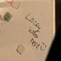 Whiteboard tagger. She was at Bonnie's door, and apparently, she was smiling about it. Lacey spreads the love in 3.12 "There's Got To Be A Morning After Pill."