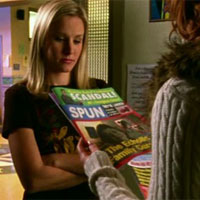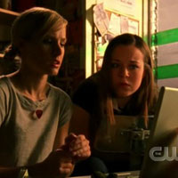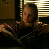 Actress. Young, blonde, and moving up in Hollywood. Kind of like Kirsten Dunst, but with credibility. No offense to Ms. Dunst, but she's the one with Bring It On on her résumé. In recent years, Ms. Lohman has worked with Atom Egoyan, Tim Burton, and Ridley Scott. Her Scott project, Matchstick Men, makes an appearance in poster form in 2.04 "Green-Eyed Monster."