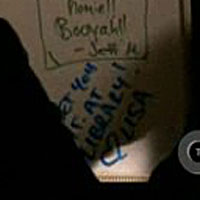 Name on a blackboard. The English teacher of Hannah Griffith? A long-lost relative of Lana Lang? Or yet another of the rampant graffiti writers haunting Neptune High? The mystery is killing us in 2.14 "Versatile Toppings."