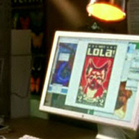 A dog on a poster on a computer screen. Probably based on Kristen Bell's real-life dog, Lola witnesses the first recorded business meeting of Mac and Beaver. This should be the beginning of a beautiful friendship in 2.09 "My Mother, the Fiend."