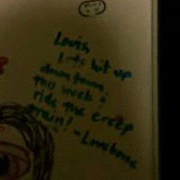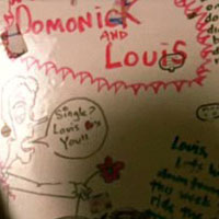 Roommate of Domonick Desante. According to the whiteboard on his door, Louis [heart]'s you if you're single, has a friend named "Lovebone" who wants to "ride the creep train," and has a roommate whose hobbies include forwarding Internet porn. Louis sounds like a stand-up individual in 3.20 "The Bitch Is Back."