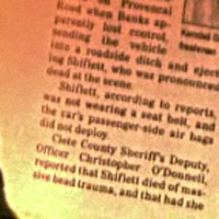 Police investigator that looked into the crash that killed Kendall Shiflett. Any relation to this man who was wounded in Iraq? Could be. Either that, or someone in the props department really really loved The Bachelor. The erstwhile Robin gets another shout-out in 2.19 "Nevermind the Buttocks."