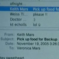 Though some people believe children should be seen and not heard, this boy is obviously of the reverse philosophy. When informing Veronica that the Sheriff wanted to inspect her locker, he never showed his face to the camera. Of course, he could be disfigured in some way or have really bad acne. The mystery of the faceless boy persists in 1.06 "Return of the Kane."