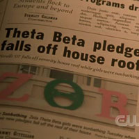 Fratboy on the Pi Sigma Sigma scoreboard. It's refreshing to know that college kids these days are still inspired by Hitchcock movies, but what does it say about the educational system if they can't even spell "Psycho?" Oedipal thrillers and orthographical dramas meet in 2.16 "The Rapes of Graff."
