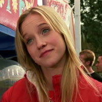 A Hearst College student, she's the on-campus equivalent of the nosy neighbor. She notices what Parker and Mac were wearing when they left their dorm room, where they were going, and what they probably will do once they get there. How does she know they plan to use the gym's Stairmaster? Why not the treadmills or the ellipticals? Is she telepathic, or did she follow Parker and Mac to the gym and take copious notes on their activities? This co-ed needs to get a life in 3.03 "Wichita Linebacker."
