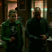 Not only is he a super huge deputy, he's also a super huge bouncer and a friendly acquaintance of Veronica's! Less great is Veronica's insistence in destroying our hope that he is also a super huge cage dancer, but we guess you can't have everything, can you. Super huge deputy is multi-tasking in 2.12 "Rashard & Wallace Go To White Castle."