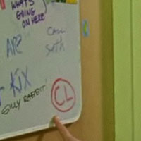 One of the names on the whiteboard in the interrogation room. Who is s/he? Probably a deputy, but it's one of those things we'll never know. This identity, along with those of Artez and Peters, is just another mystery to be solved in 3.15 "Papa's Cabin."