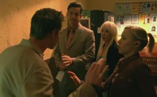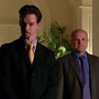 Logan is Stupid, according to Cliff. Apparently, turning down a one-time offer of a plea-bargain that would have allowed Logan to spend less than two years in jail qualifies someone to be Stupid. Stupid enough for Cliff to actually wear an "I'm With Stupid" T-shirt to court? Cliff, be seen in something other than a dashing discount suit? *gasp!* Perhaps Cliff can have those words sewn onto the lapel of one of his suits. Logan gets some advice on dressing for a trial in 2.15 "The Quick and the Wed."