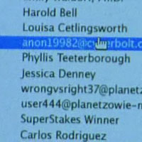 Person on Woody's contact list. Woody Goodman, you may have already won a fabulous prize! Just send us $21.95 and we'll be happy to tell you whether you've really won anything at all! It's a mystery why someone so spammy-sounding is on Woody's list in 2.21 "Happy Go Lucky."