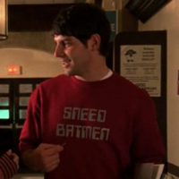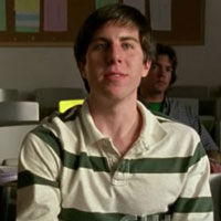 As he practices for the International Hacky Sack Tournament, he shows off another talent: that of being an informant for Wallace Fennel. Dude knows a blonde chick with a nice ass when he sees one, you know what we mean? You don't, do you. That's okay. We don't know why the writers call him a stoner in 2.02 "Driver Ed."